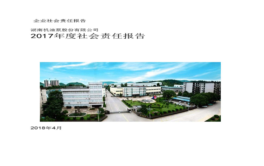 湖南机油泵股份有限公司 2017年度社会责任报告